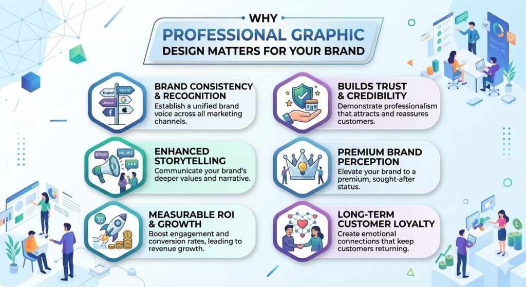 Professional graphic design plays a vital role in building a strong and memorable brand. In today’s competitive market, the visual appearance of a business often creates the first impression for customers. Well-designed logos, advertisements, websites, and social media graphics help present a brand in a professional and attractive way. Professional graphic design not only improves the visual appeal of a brand but also communicates its message clearly and effectively. It helps businesses build trust, create brand recognition, and stand out from competitors. By using consistent and creative design elements, businesses can strengthen their identity and connect better with their target audience.
