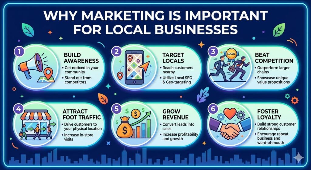 Digital marketing has become an essential tool for local businesses in today’s digital world. Most customers now search online to find products and services near them. Because of this, businesses need a strong online presence to stay competitive and reach their target audience. Digital marketing helps local businesses increase visibility, connect with nearby customers, and promote their services effectively through platforms like search engines, social media, and online advertisements. By using the right digital strategies, local businesses can attract more customers and grow successfully in their local market.